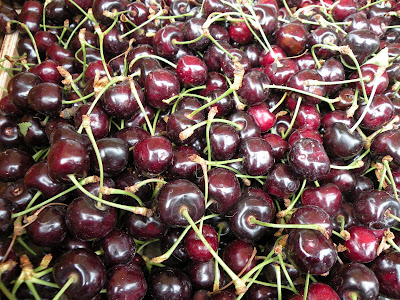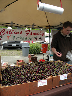 Yes, indeedy. Clouds and gloom notwithstanding, we know summer is nearly upon us by the fruits beginning to roll in. Last week I picked up this tasty, earliest cherry variety from Robbie at Collins Family Orchard of Selah, Washington. He expects the first Rainiers this week and his personal favorites, Titans, in early July. For those not quite ready to let go of the fall-winter feeling, Robbie has plenty of Pink Lady apples which still crunch satisfyingly.