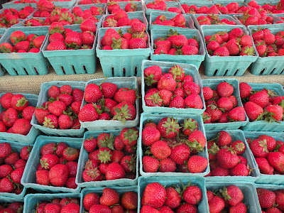 'Cuz strawberries are in. Multiple varieties at multiple farmers. Best to try them all. My ten-year-old favors the big berries (all that brainwashing from what she sees in the clamshell containers at the grocery store), while I like them tiny.
