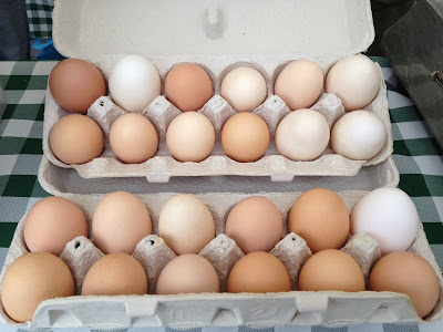 Another reason to come out this Saturday is to try a dozen eggs from Van Vuren Farms. I've been getting them since the Thursday Market ended, and they're wonderful. Giant, with dark yolks and nice body to the whites.