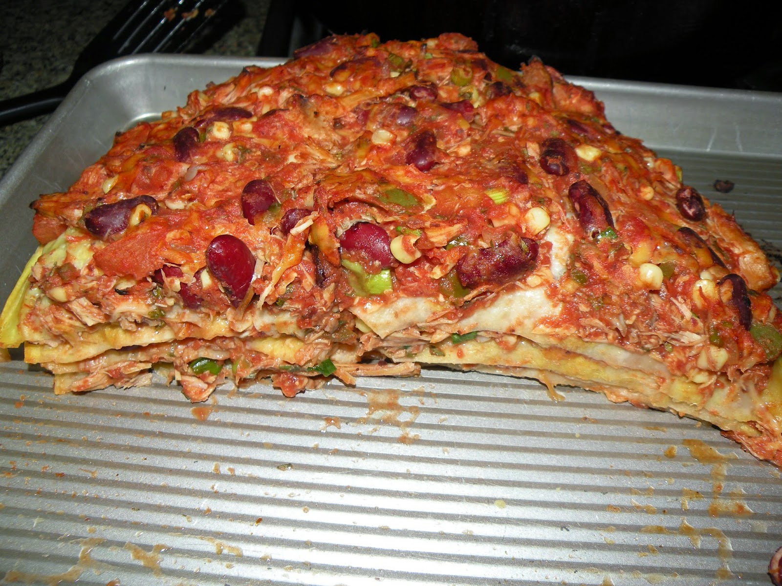 As I wrote my friend afterward, Tortilla Pie was a little hard to serve (we resorted to kitchen shears to cut it up), but it sure was tasty.