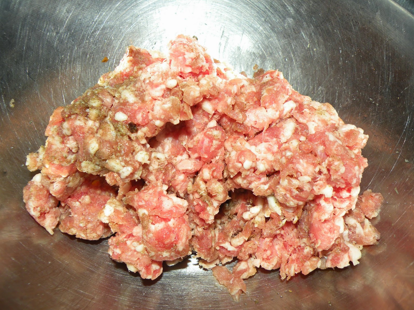 The only problem? I didn't have any bacon or breakfast sausage, and I was determined not to go to the store. The solution? What else--the Internet! It took all of one minute to investigate three different recipes and decide which one I had all the ingredients for. (And if you'd like to see the original recipe, which requires two pounds of ground pork, it's right here. Otherwise, for my one-pound version, keep reading.)